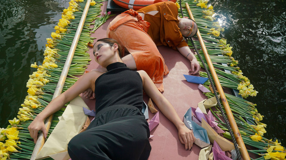 "Ming Ming" is a physical theater work, an artistic synthesis of body, material installation, multimedia video, and sound elements. Its meaning refers to the concept of 'when I enter the dream, I am originally desire'. At midnight, the physical body out of thin air no longer mixes with thoughts, and the world of the dreamer starts from this moment. A silvery Buddha is writhing on the ground; the German woman on the 19th floor throws bundles of plantains out of the window; the pink crowd cuts itself with a razor blade; the sea whale that swallowed him is in its twilight years. "Ming Ming" is inspired by more than three hundred dreams recorded by the creator himself over the past nine years, totaling more than thirty-five thousand words. The desire for extreme pleasure only results in being buried in the daytime; the night gives space for the mirth to become a visualized fragment. Room, fear, repetition, family, you, and I suffocate in dreams and enjoy in dreams. Real, unreal, the performer melts everything intimate into a dream, inviting you into this weightless orgy. At midnight when I fall asleep in my dream, I am supposed to enjoy my desire to live. This is everything about "Ming Ming", and everything about you.